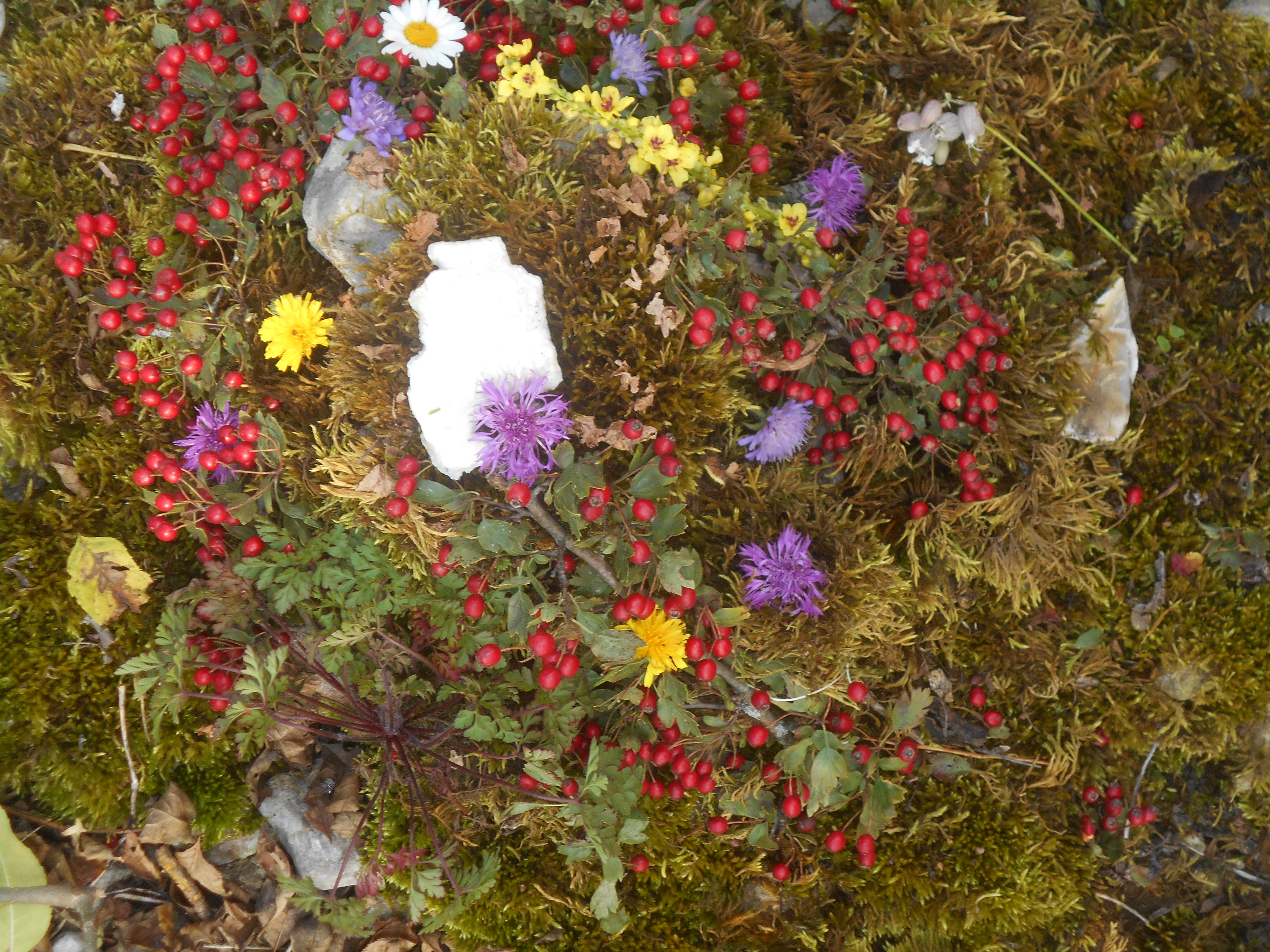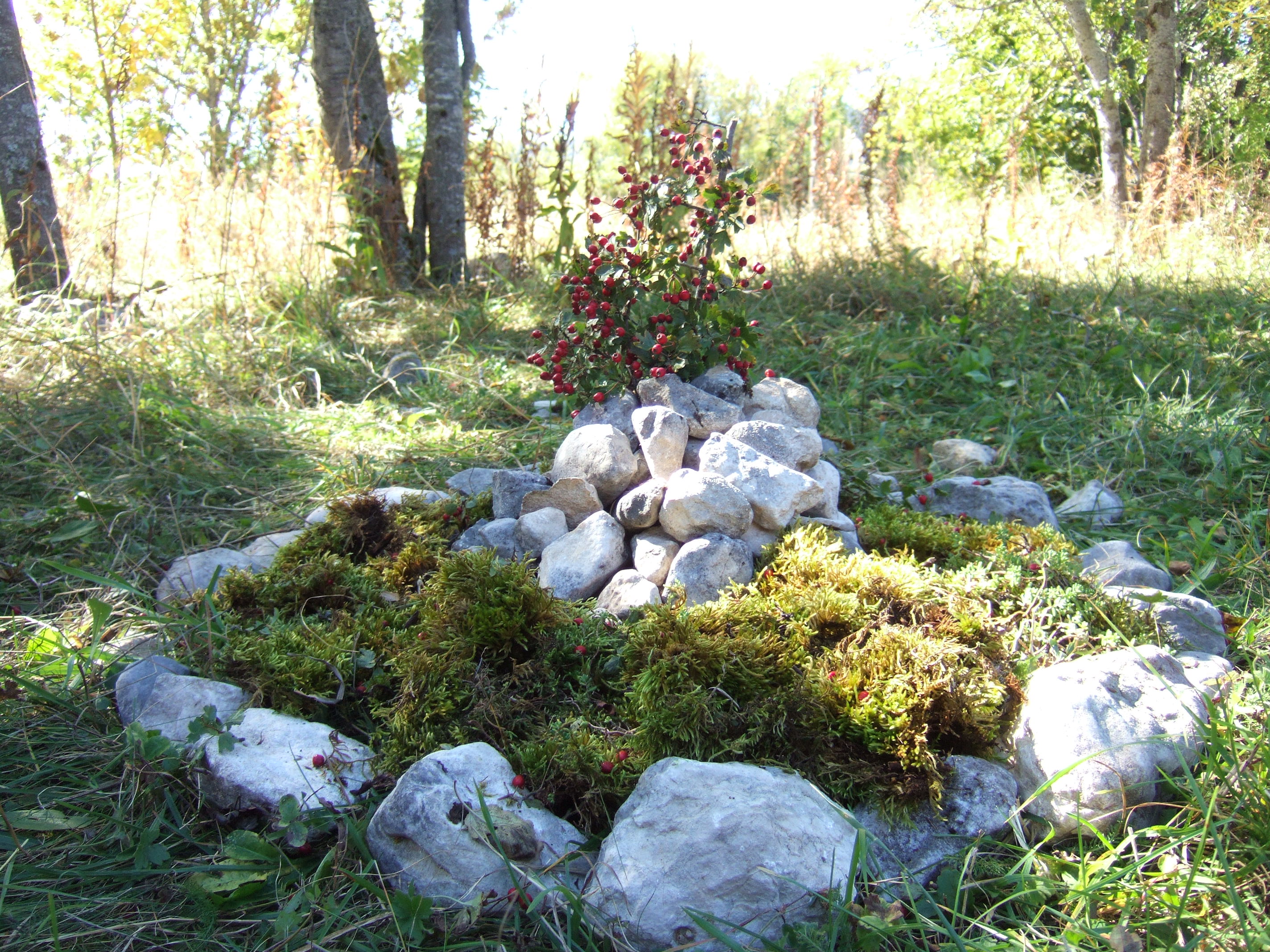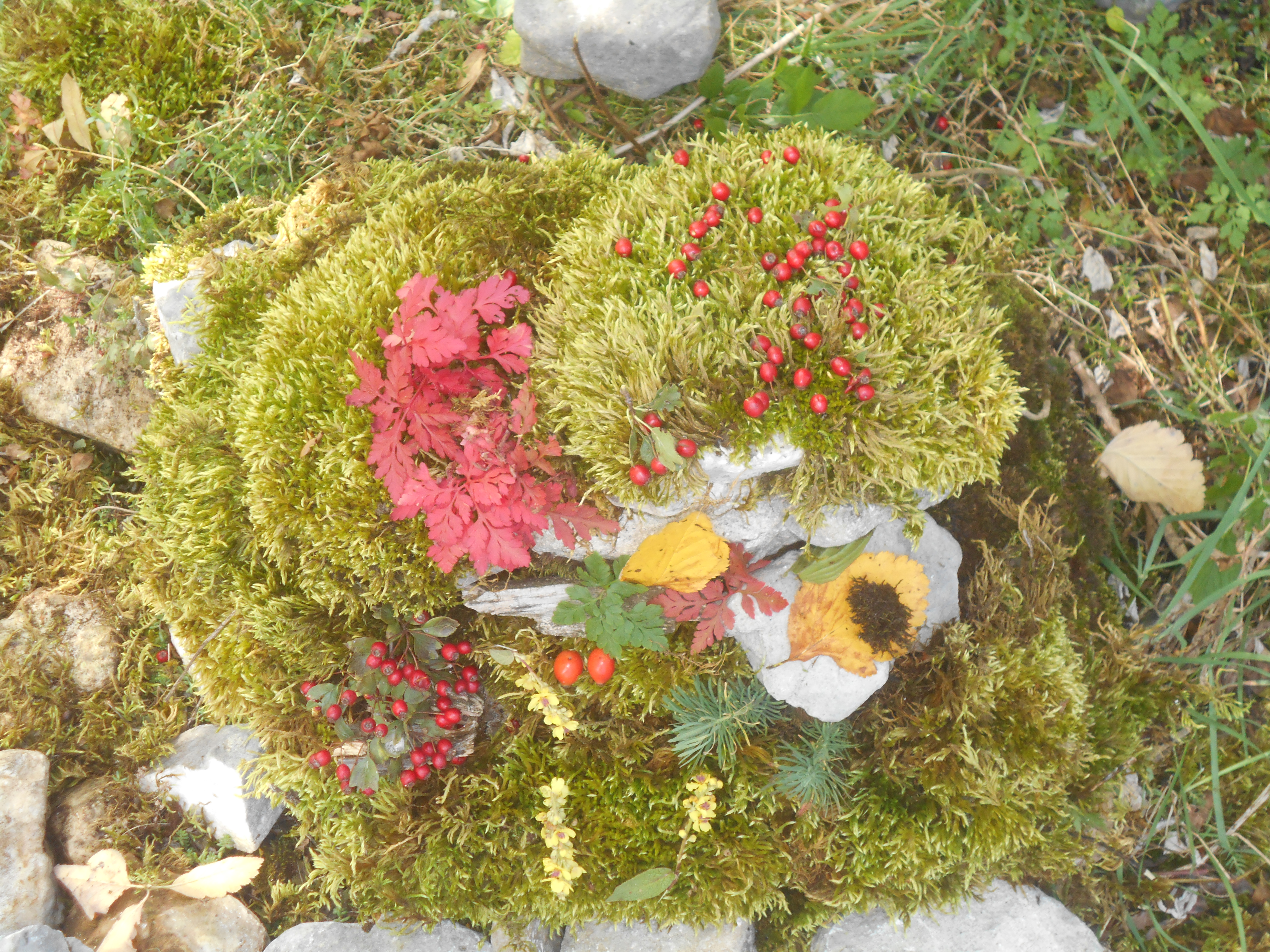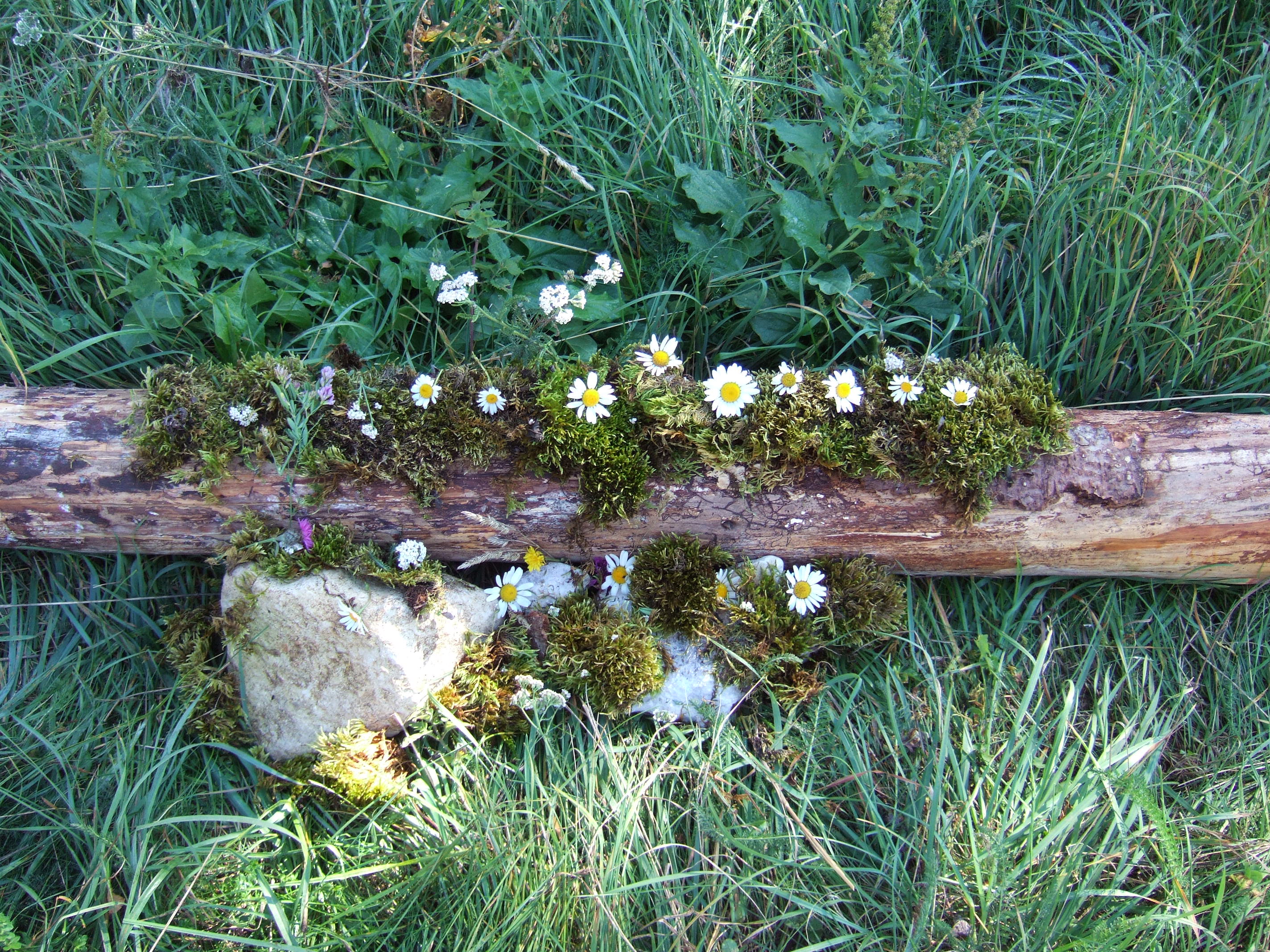 Après une belle ascension entre alpages et forêts et l'arrivée à la Molière, les élèves ont découvert une vue panoramique sur les différents massifs montagneux du Dauphiné: Belledonne, Chartreuse, les Ecrins (en particulier le Taillefer). Le beau temps nous a même permis de voir le Mont Blanc. Ce moment d'élévation (au sens propre et figuré) et de distanciation par rapport à la vie quotidienne a permis aux élèves de porter un nouveau regard sur le monde. Quel contraste avec l'activité du lendemain ! Le Land art ou l'art avec/et dans la nature est une immersion dans la matière, les couleurs et les formes dont voici quelques créations collectives d'élèves. De petits magiciens qui nous montrent la beauté du monde!