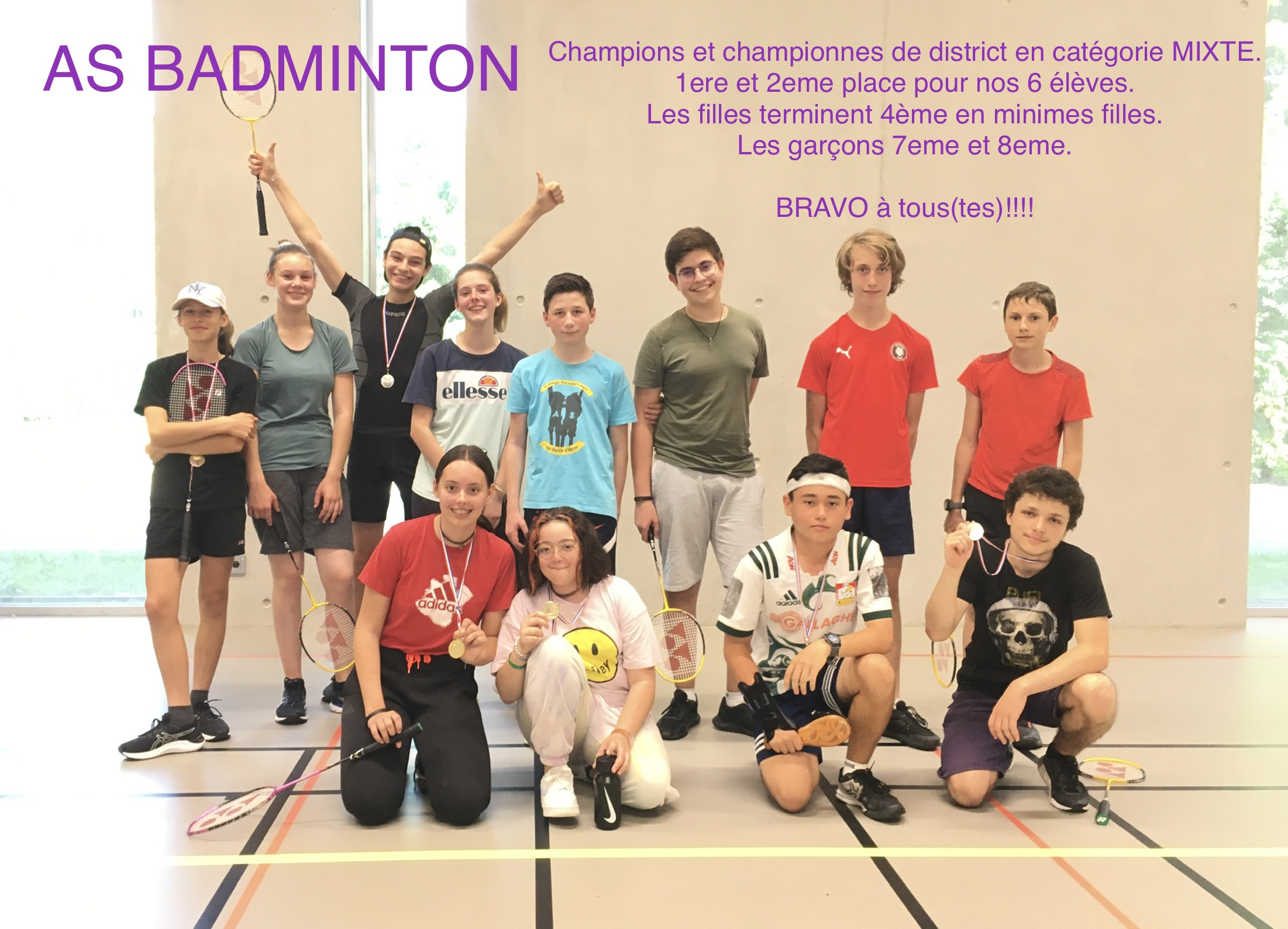 Suite aux championnats de district très réussis le mercredi 18 mai à Seyssinet, ce mercredi 1er juin a été l'occasion d'une belle fin de saison pour les badistes du collège. 5 équipes ont représenté le collège lors du critérium départemental.