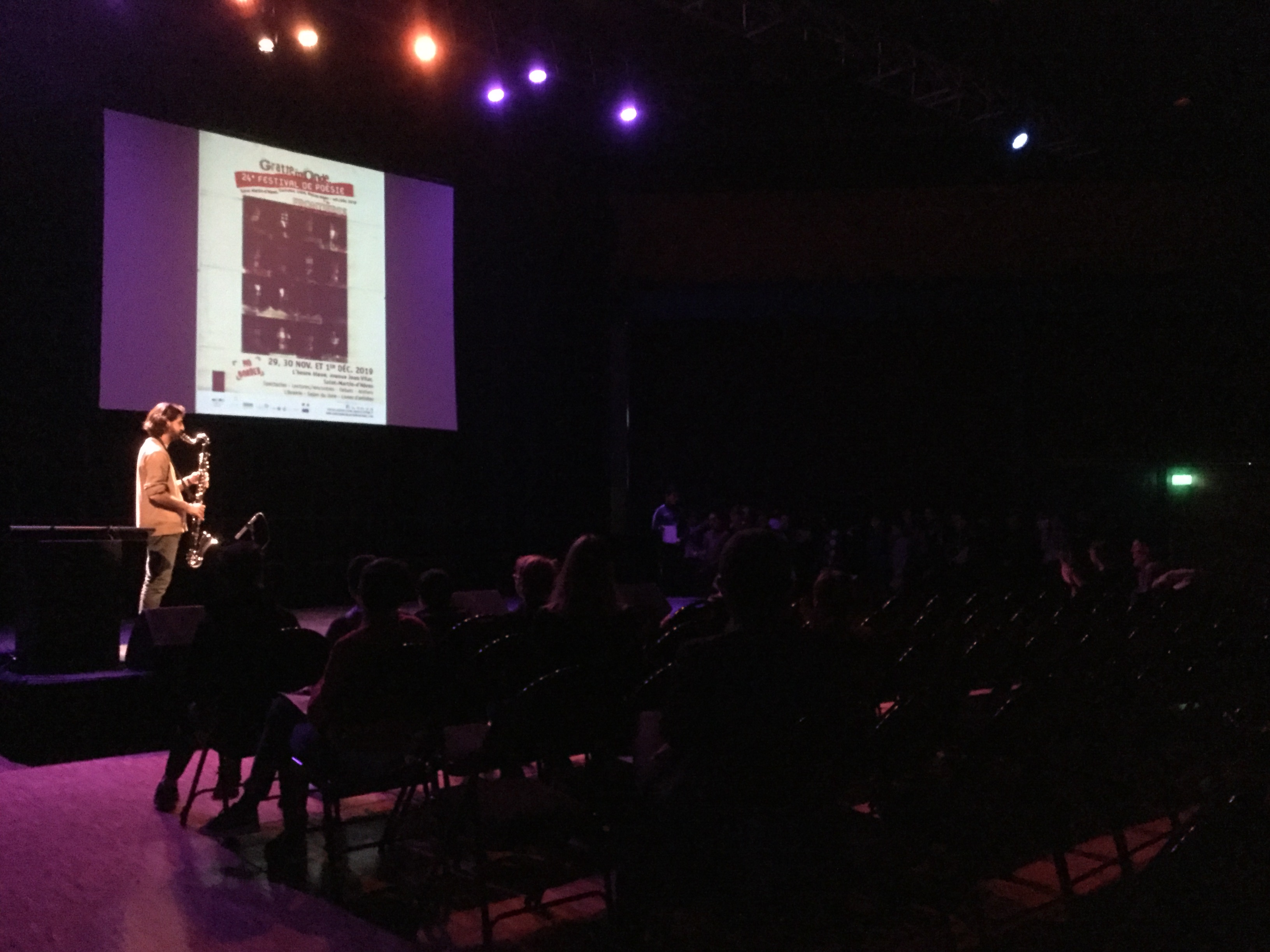 Deux classes ont participé à la journée scolaire du festival : ateliers d’écriture et de mise en voix le matin, puis spectacle l’après-midi, devant toutes les classes participantes. Bravo à tous ces poètes en herbe, qui ont affronté avec courage et talent la scène !
