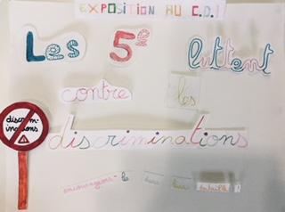 Dans le cadre de l'EMC, les élèves de 5A, 5B et 5F ont effectué des recherches sur les discriminations en France. Chaque groupe a choisi une discrimination et a fabriqué une affiche pour la dénoncer.