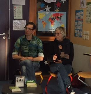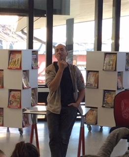 Simon Van der Geest a rencontré la classe de 4°E autour de son roman Spinder, traduit du néerlandais : une histoire de lutte fratricide autour d’une cave et d’un secret bien trop lourd à porter pour deux jeunes garçons...Les élèves ont brillamment questionné en anglais l’écrivain sur son roman et son métier, aidés pour les réponses de Michèle sa traductrice.