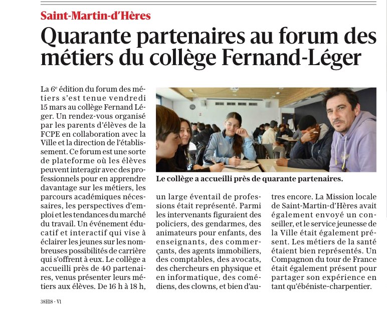 Organisé par les professeurs ainsi que par la fédération FCPE, avec l'appui de la direction et de l'ensemble du service de vie scolaire, le forum a regroupé quelque 260 collégiens qui ont pu découvrir les métiers d'aujourd'hui et de demain dans une ambiance très studieuse, bienveillante et respectueuse de chacun.