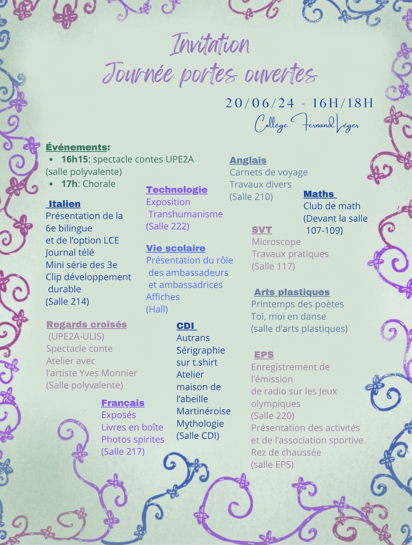 Ce jeudi 20 juin ont eu lieu les portes ouvertes du collège Fernand Léger de 16h à 18h.